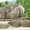 直江兼続が、猿尾堰の鎮守として祭った石碑と言われています。