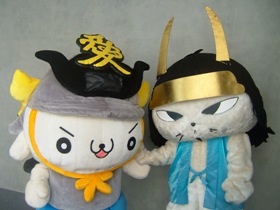 やってきました「いしだみつにゃん」!!と彦根からのバスツアーの皆さま!!