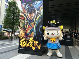 巨大パネルやのぼり旗、花の慶次仕様の車など会場はまさに慶次一色!